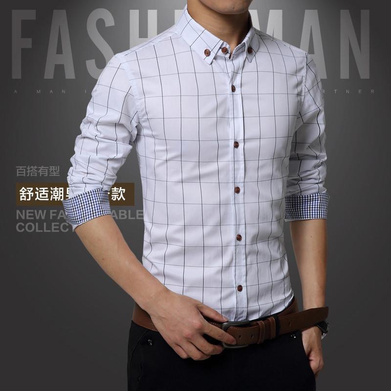 2015 New 100% Cotton Plaid Men Shirt Mens Dress Shirts Slim Fit Social Shirt Men Causal Striped Shirt Men Camisas Hombre M-5XL