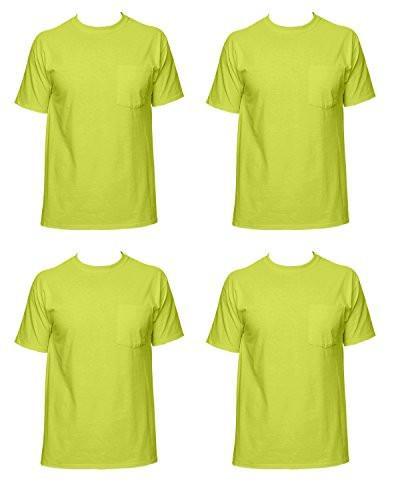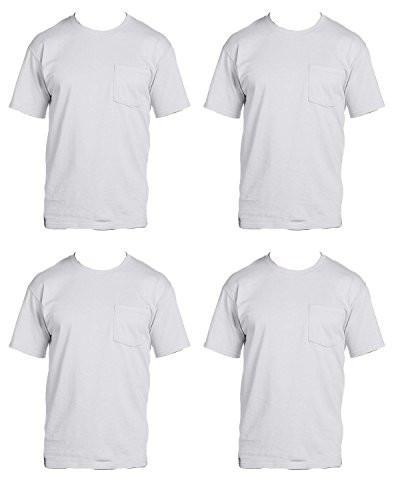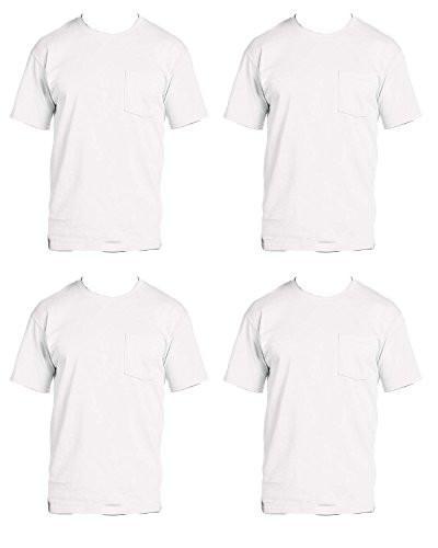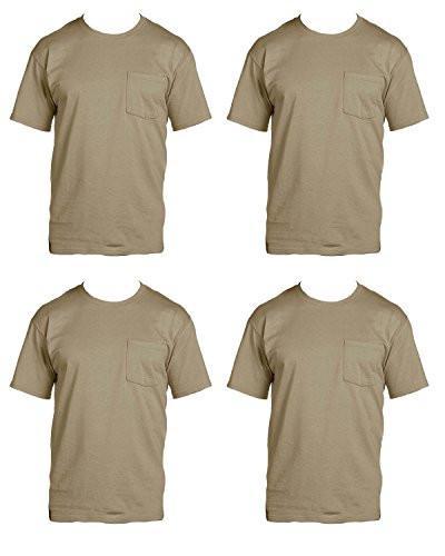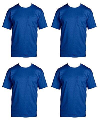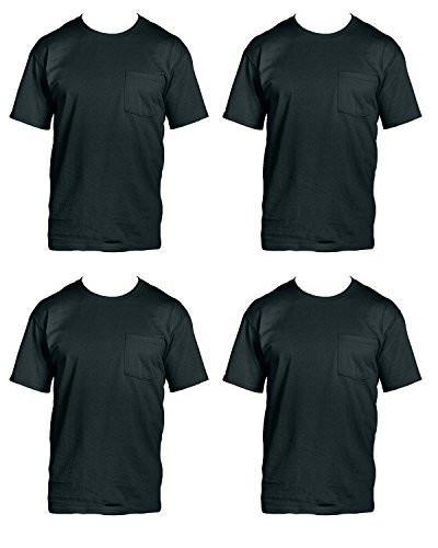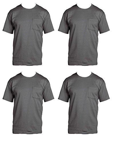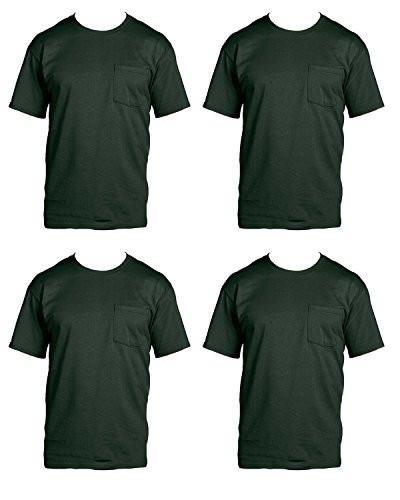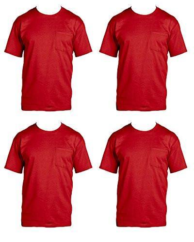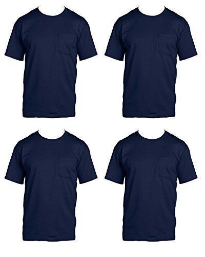 Four-pack short-sleeve tees with crew neckline and chest pocket\"Colors may Vary\"Tagless